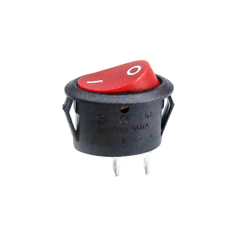 Comutatorul basculant cu trei pini R13-51 este proiectat cu o carcasă rotundă compactă, ideală pentru utilizare în aplicații cu spațiu limitat, cum ar fi aparatele electronice și panourile de control. Designul său prezintă un capac roșu al actuatorului cu marcaje clare „|/O”, permițând operarea intuitivă de pornire/oprire și identificarea stării. Designul de montare încorporat permite o instalare sigură și ușoară a panoului.